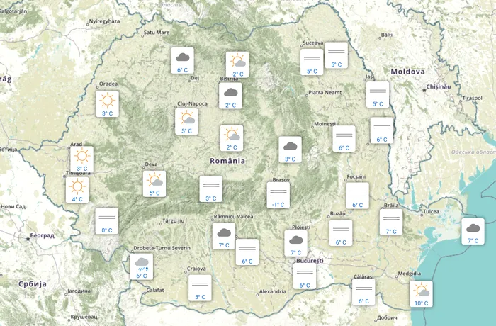 Miercuri dimineață, cea mai scăzută temperatură din România s-a înregistrat la Iezer – minus 2 grade Celsius. Cerul a fost parțial noros.