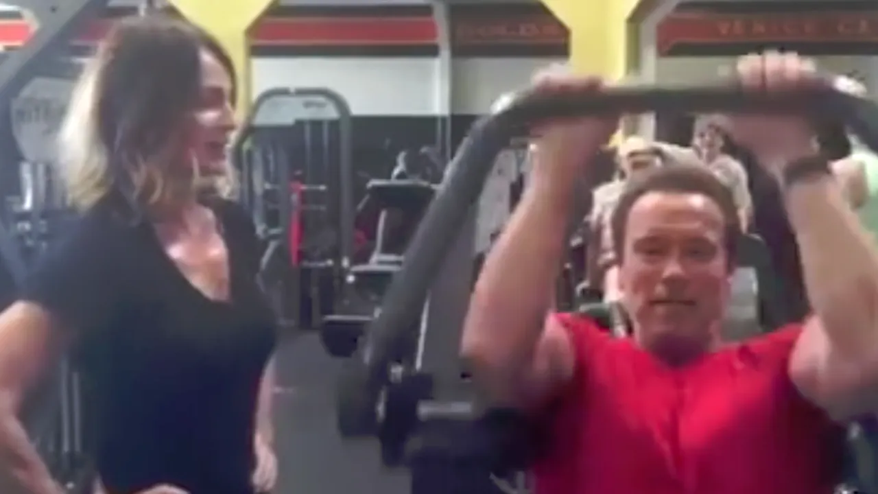 „Este extraordinar să vii devreme la sală și să ai ca antrenoare o campioană olimpică – mulțumesc, Nadia Comăneci! 10 repetări în onoarea primului 10 perfect de la Jocurile Olimpic”, a notat fostul guvernator al statului California pe pagina sa de pe rețeaua de socializare.