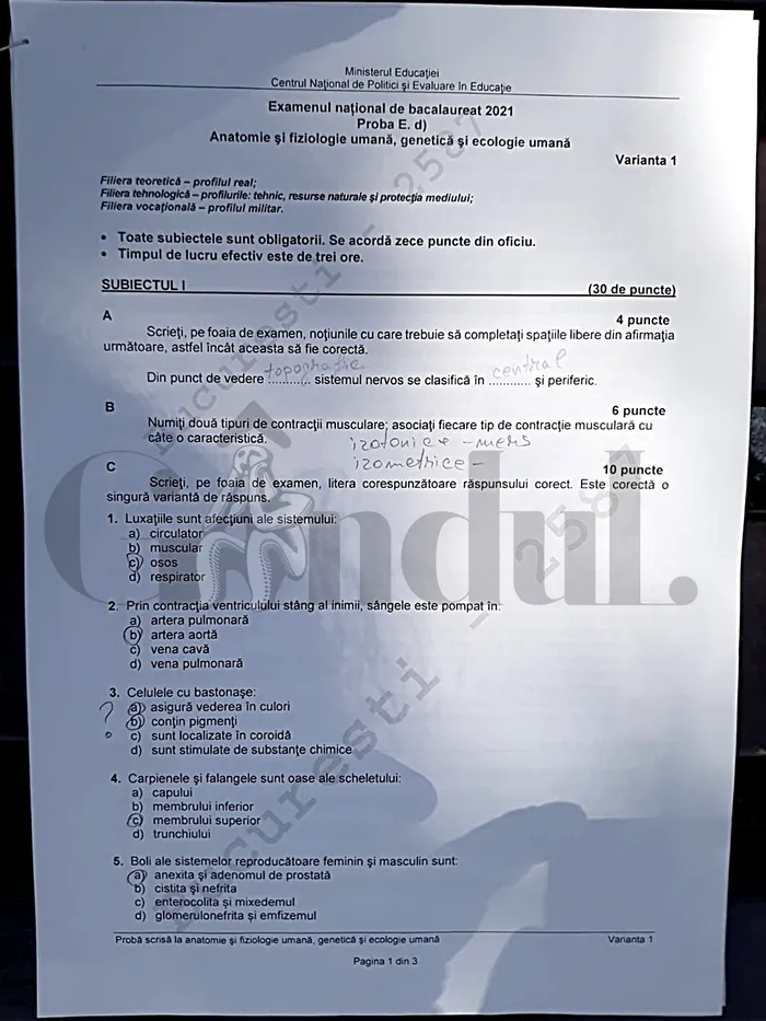 Gândul a aflat ce subiecte au primit absolvenții clasei a XII-a la proba de Biologie de la examenul de Bacalaureat 2021, proba la alegere de la profilul real. Candidații au avut de rezolvat cerințele de pe varianta de subiecte cu numărul 1.