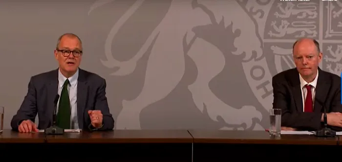 Sir Patrick John Thompson Vallance FRS FMedSci FRCP este un medic, om de știință și farmacolog clinic britanic (stânga) si Chris Whitty, medicul-șef britanic, (dreapta)