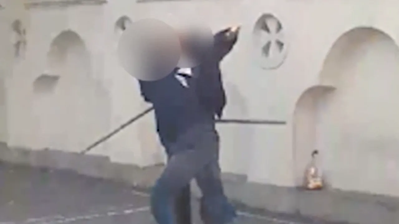 În filmuleț se poate vedea cum cei doi oameni ai străzii, care erau beți, s-au bătut cu pumnii și cu două bețe până când unul dintre ei a căzut pe trotuar, sub privirile mai multor persoane care au asistat la incident, dar nu au intervenit.