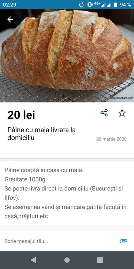 Pâinea poate fi livrată direct la domiciliu în București și Ilfov. Gospodinele vând tot pe site-ul de vânzări, de la pâine la mâncare gătită și prăjituri de casă.
