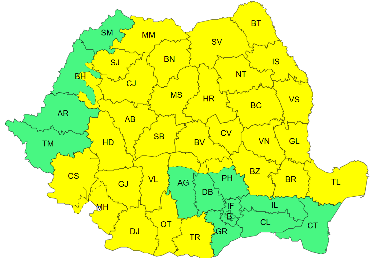 Zonele afectat, potrivit ANM, sunt Transilvania, Oltenia, cea mai mare parte a Moldovei și a Maramureșului, sud-vestul și nord-estul Munteniei, nordul Dobrogei și la munte.