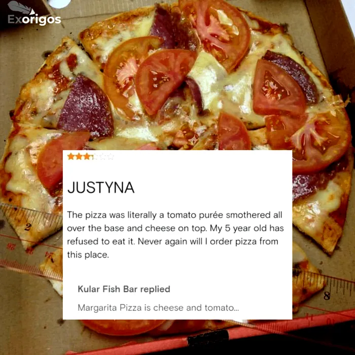 „Pizza asta a fost pur și simplu doar un piure de roșii cu brânză peste tot. Copilul meu de cinci ani a refuzat să o mănânce. Nu mai comand niciodată pizza de la voi.”, a scris femeia supărată.
