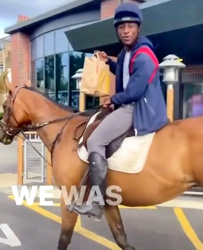 Oamenii sunt obișnuiți să vadă motociclete, mașini sau scutere la coadă pentru un meniu McDonald’s, însă, un baiat călărind un cal în fața incinta unui fast food nu este tocmai obișnuit.