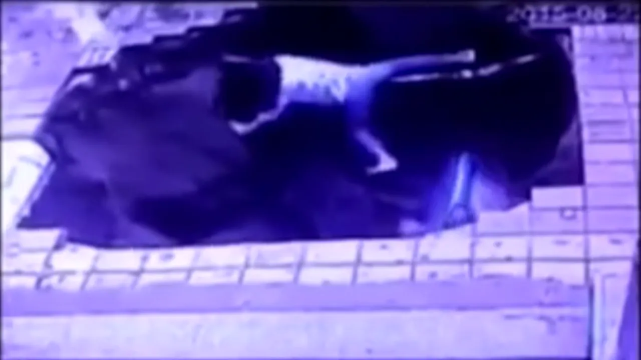 Imaginile surprind momentul în care asfaltul din dreptul stației de autobuz cedează pe neașteptate, „înghițind” instantaneu trei oameni. Alte două persoane alunecă în crater într-o fracțiune de secundă, iar una dintre ele reușește să se agațe de o țeavă aflată sub pământ.