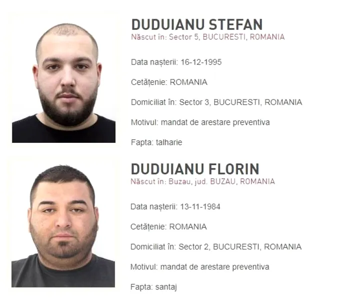 Duduianu Ștefan și Duduianu Florin au fost dați în urmărire după ce pe numele lor au fost emise mandate de arestare preventivă în lipsă, în dosarul de tâlhărie și șantaj instrumentat de Serviciul Grupuri Infracționale Violente – D.G.P.M.B., sub supravegherea Parchetului de pe lângă judecătoria Sectorului 1. Față de alte 11 persoane au fost dispuse măsuri preventive în aceeași cauză.