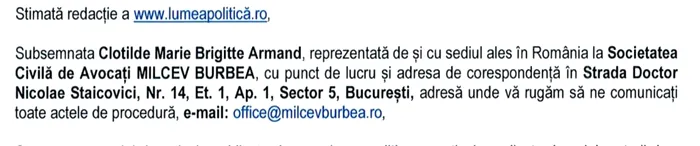 Despre dreptul la replică și argumentele sale hilare urmează să scrie Lumea Politică pe larg. Ceea ce m-a șocat a fost numele avocaților lui Clotilde. Societatea Civilă de Avocați Milcev Burbea a redactat și transmis dreptul la replică împreună cu o delegație completată în fugă, pe un colț de masă dintr-un sediu de campanie.