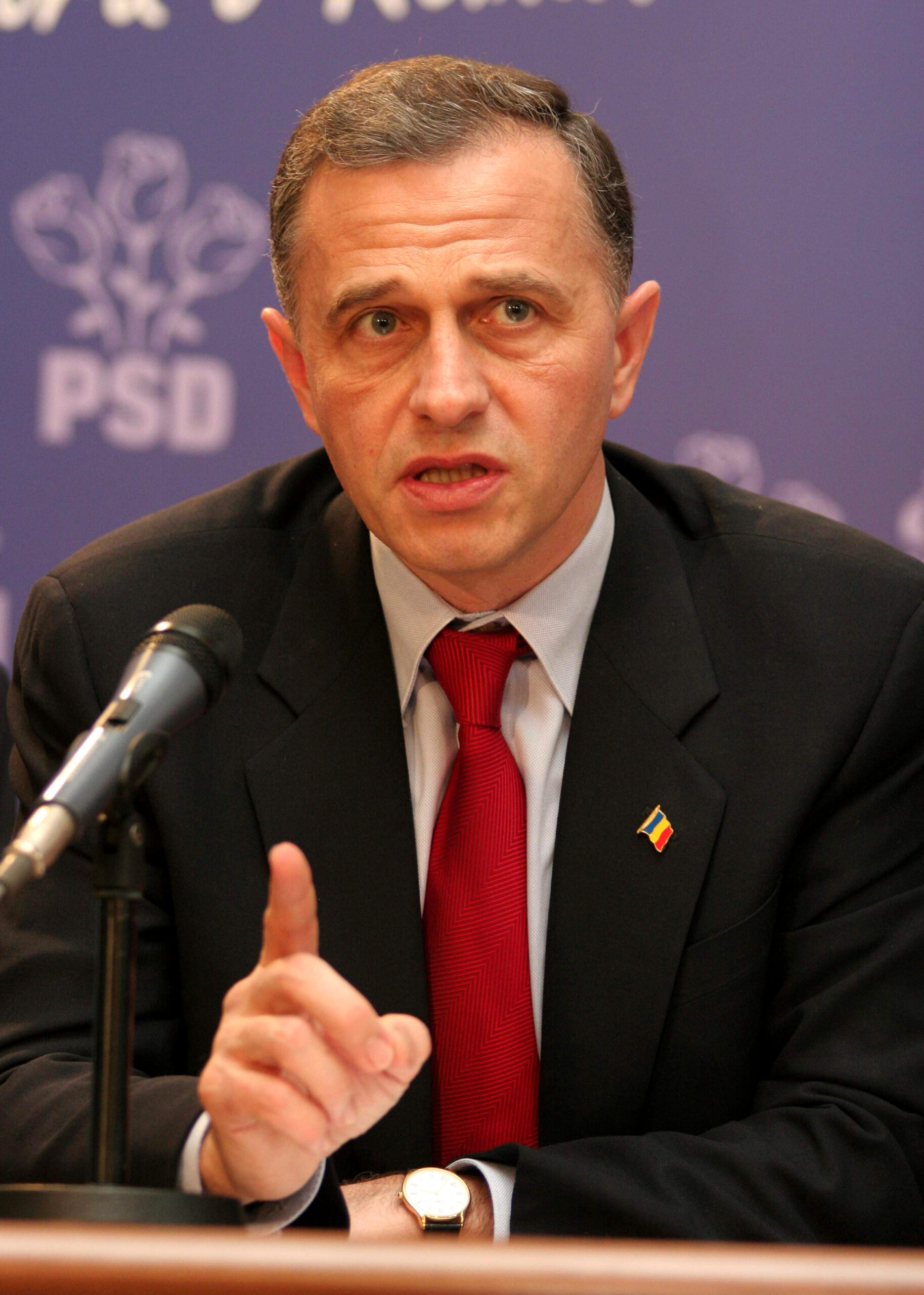 Presedintele PSD, Mircea Geoana, ține un discurs în timpul Consiliului National PSD, joi, 14 mai, 2009, în București. Social-democrații au arătat la Consiliul National extins al partidului, care a confirmat propunerea ca Mircea Geoană să candideze la prezidențiale, că au învățat să se concentreze asupra esentialului, părăsind în masă pavilionul Romexpo după discursul prezidențiabilului.