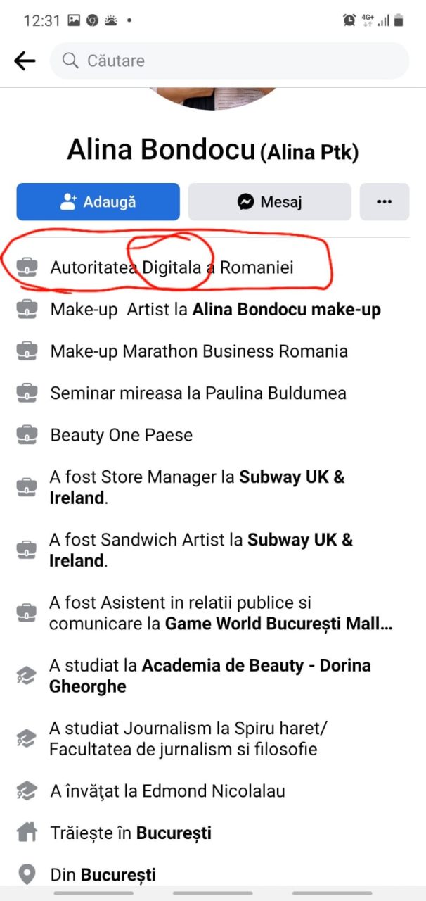 Astfel, Alina Bondocu va ajuta la îndeplinirea obiectivului Guvernului, şi anume transformarea digitală a societăţii româneşti. Asta deşi, până nu demult, nu a ştiut exact cum se numeşte instituţia care a angajat-o. Astfel că, pe pagina ei de socializare, la locul de muncă era trecută Autoritatea DIGITALĂ a României.