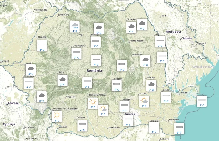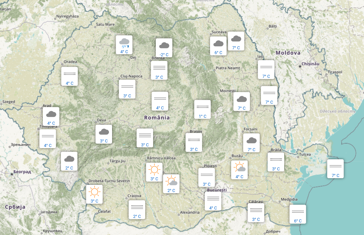 Au fost 3 grade la Cluj, la Bistrița, la Brașov și la Sibiu, iar la Reșița au fost 2 grade și cer acoperit.