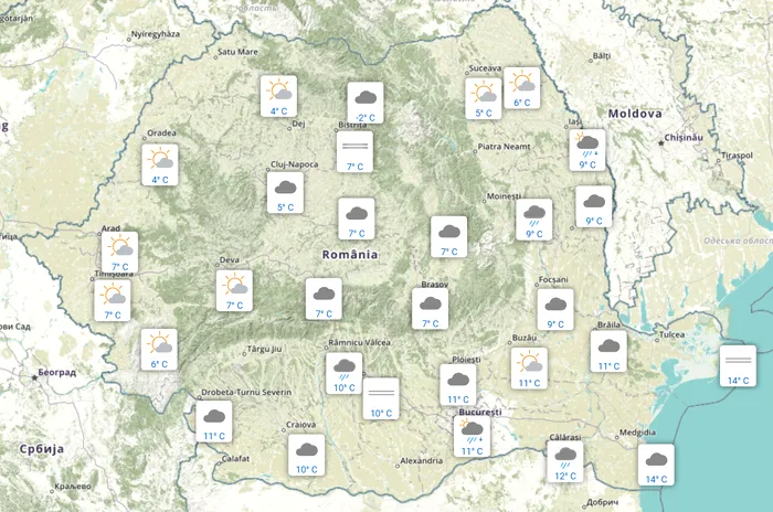 • Cu alte cuvinte, la nivel național, maximele se vor situa, în general, între 10 și 17 grade. Cerul va fi variabil, cu înnorări și ploi slabe la începutul zilei în Dobrogea, local în Muntenia și în sudul și estul Olteniei și al Transilvaniei, dar și în jumătatea de sud a Moldovei.