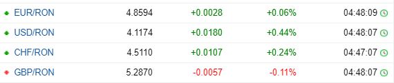 Astfel, 1 euro este cotat la 4.8594, într-o ușoară creștere față de cota înregistrată vineri, de 4.8582. Dolarul, la fel, se află într-o relativă creștere față de ziua de vineri. Luni, moneda americană are o valoare de 4.1174 față de 4.0972 înregistrată pe data de 18 septembrie. În fine, lira sterlină, față de euro și dolar, a scăzut față de ziua de vineri și a ajuns la 5.2870, față de 5.3220, valoarea pe care a avut-o pe 18 septembrie.