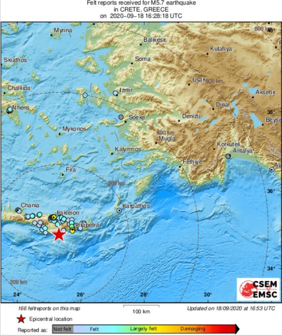 Epicentrul mişcării telurice a fost la 17 kilometri vest-sud-vest de localitatea Arvi, situată pe Insula Creta.