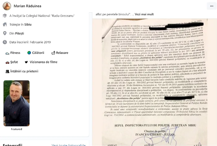Sursă Foto -Facebook/Materialul de cercetare pentru destituire polițiști sibieni postat pe internet