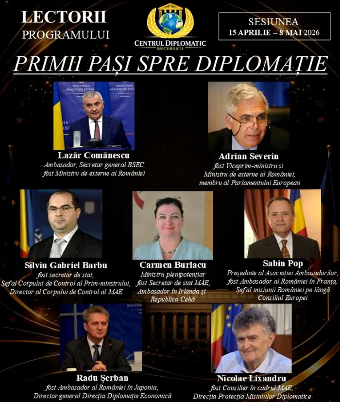 „Proiectul „Primii pași spre diplomație” își propune să ofere tinerilor acces la o perspectivă aplicată asupra complexității profesiei de diplomat, printr-un dialog direct cu profesioniști cu experiență relevantă în domeniu”, au transmis reprezentanții Centrului Diplomatic București.