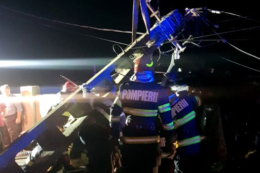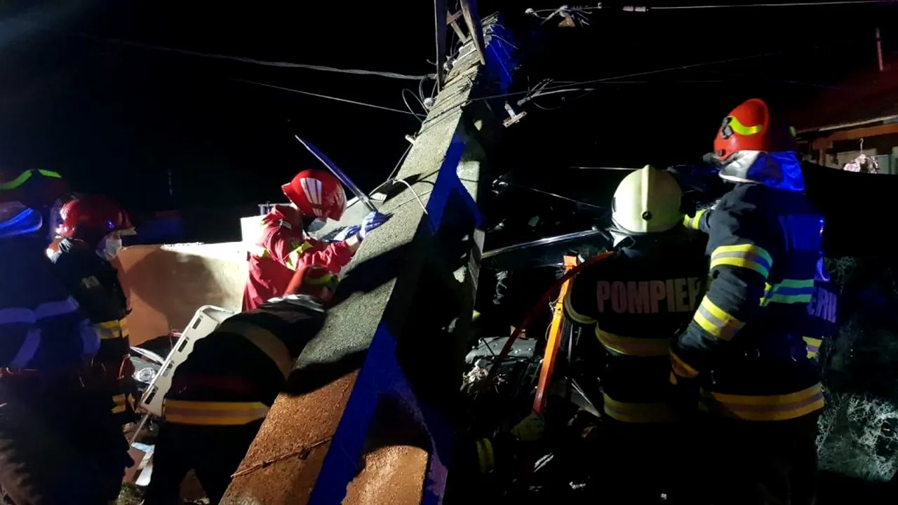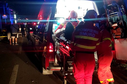 Au intervenit 11 pompieri, cu o autospecială de stingere cu modul de descarcerare, o autospecială de descarcerare grea și un echipaj SMURD.