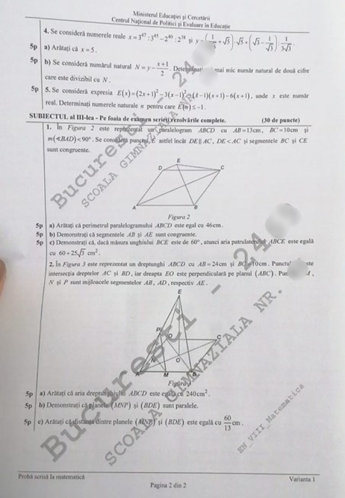 La proba de matematică de la Evaluarea Națională elevilor le-a picat varianta 1. Iată care au fost acestea: