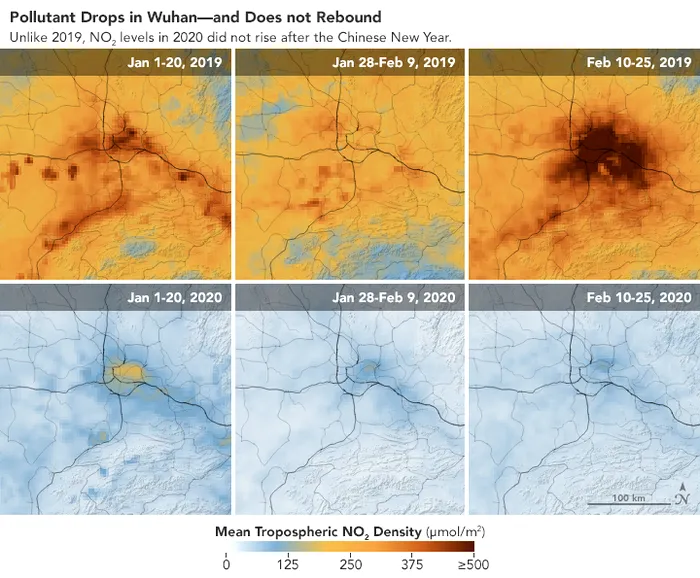 Comparativ cu perioada 1 – 20 ianurie 2020, în perioada 10 -25 februarie, cercetătorii au observat o „scădere semnificativă” a gradului de poluare din regiunea Wuhan, dar și din restul Chinei, datorită „încetinirii economice” cauzate de răspândirea coronavirusului pe teritoriului țării asiatice, potrivit raportului.