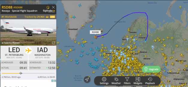 Un avion rus model Ilyushin Il-96, prezentat ca fiind parte a escadrilei speciale a Kremlinului (Rossiya – Special Flight Squadron), apare pe site-ul specializat de trafic aerian Flight Radar ca efectuând o cursă Sankt Petersburg – Washington. În presă a existat informația că Serghei Lavrov, ministrul de Externe rus, s-ar afla la bord, dar reporterii GÂNDUL au aflat INFORMAȚII EXCLUSIVE DE ULTIMĂ ORĂ.