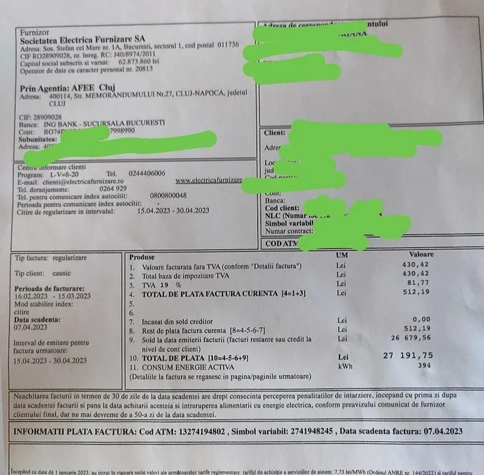 Este cazul unui bărbat care are de plătit peste 27.000 de lei, deoarece a primit factura pe tot anul, după cum a scris pe Facebook.