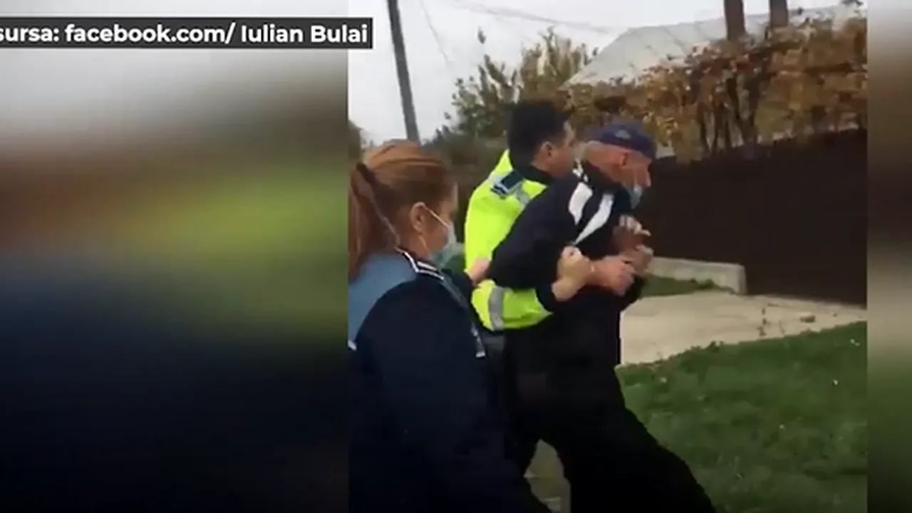 Scene teribile, ieri, pe un drum din județul Neamț. Un bărbat de 79 de ani a fost pus la pământ și încătușat de polițiști, în zona localității Girov.