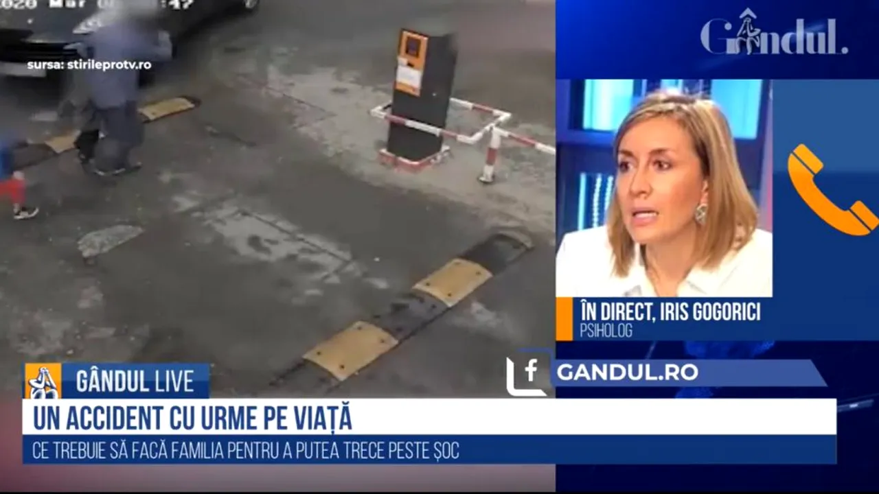 GÂNDUL LIVE. Iris Gogorici, psiholog, despre accidentul în care un șofer a trecut peste un copil de 4 ani: „E foarte greu de depășit trauma psihică”
