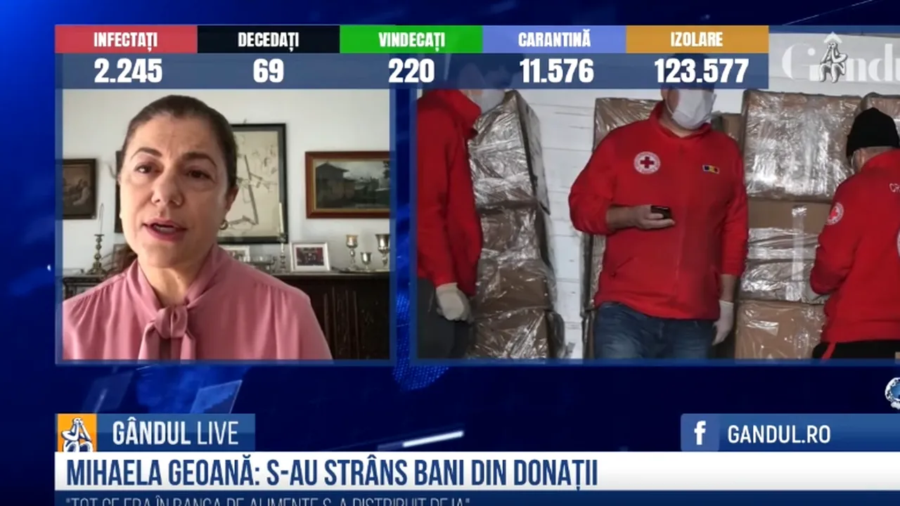 GÂNDUL LIVE. Mihaela Geoană, membru de onoare al Crucii Roșii: „Au fost distribuite un milion de măști” / „Banca de alimente funcționează foarte bine pentru familiile nevoiașe” / „Nu uităm de pacientele oncologice”