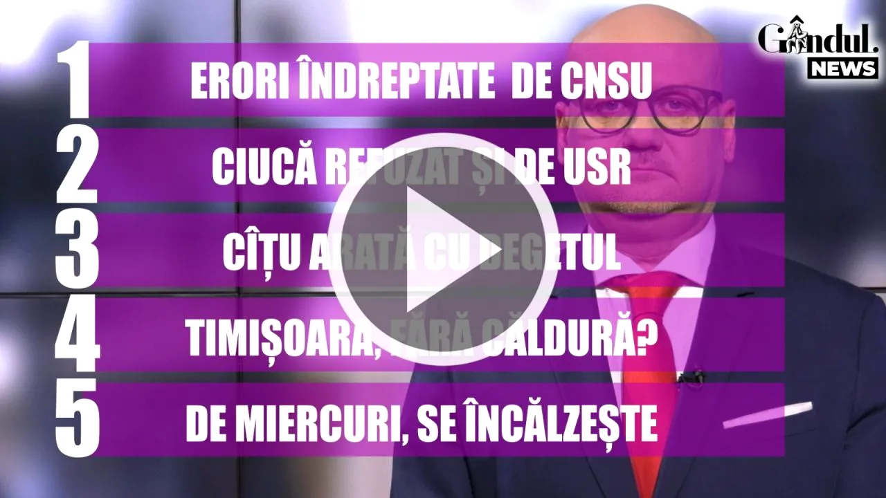 În fiecare zi, de luni până vineri, de la orele 17.00 și 20:30, vezi cele mai importante știri ale zilei, la GÂNDUL NEWS, o emisiune digitală menită să îți aducă în față cele mai importante cinci subiecte ale momentului.