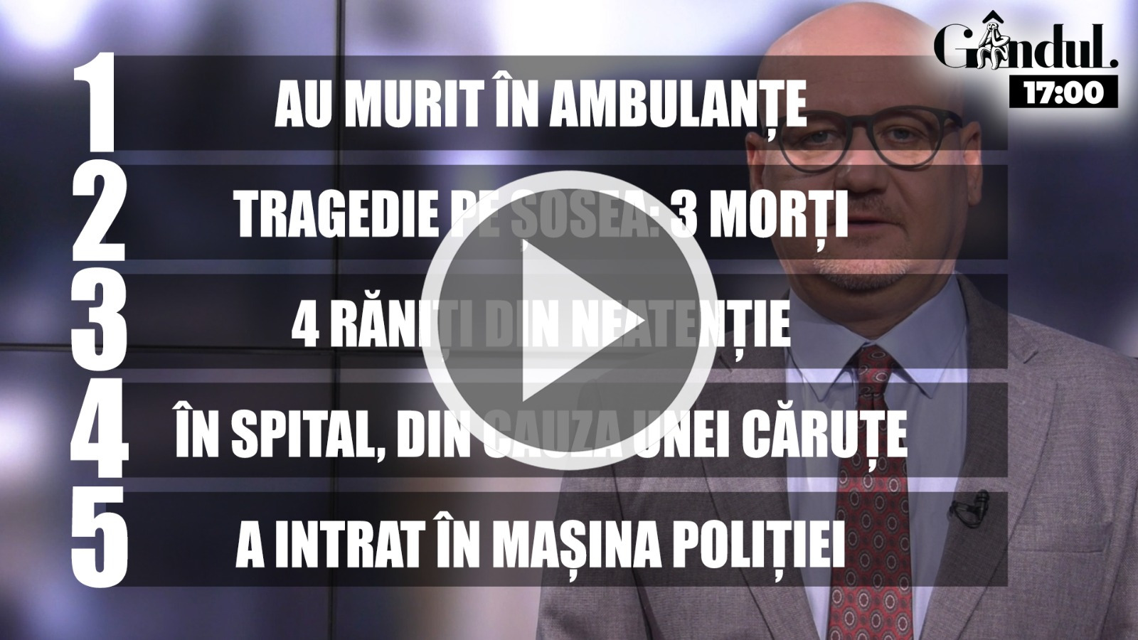 În fiecare zi, de luni până vineri, de la orele 17.00 și 20:30, vezi cele mai importante știri ale zilei, la GÂNDUL NEWS, o emisiune digitală menită să îți aducă în față cele mai importante cinci subiecte ale momentului.