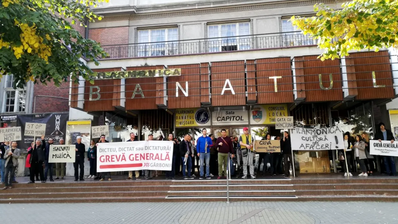 Cei 66 de angajați ai Filarmonicii Banatul nemulțumiți de activitatea directorului Ioan Gârboni au declanșat greva generală de aproape o săptămână, astfel că nu au urcat pe scena instituției pentru a susține concertul de deschidere al noii stagiuni, acesta fiind anulată.