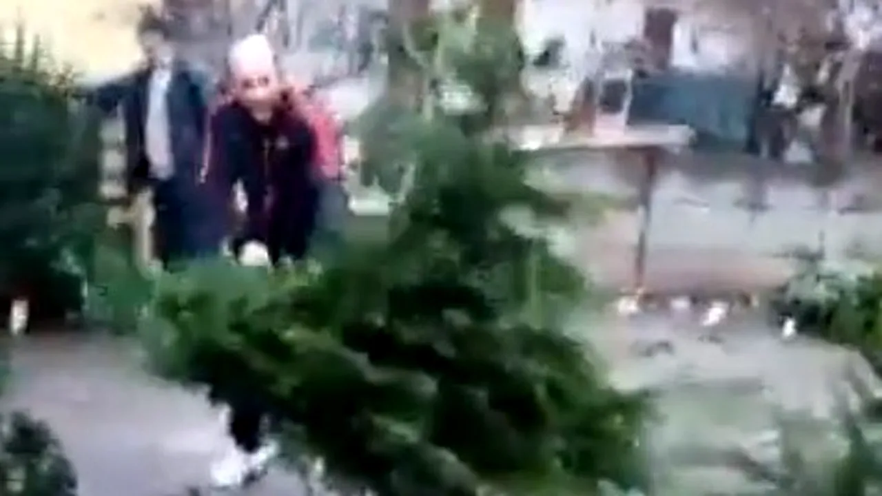 Imagini șocante | Distrugătorul de brazi face ravagii: Un român care pare nervos distruge mai mulți brazi cu o drujbă – VIDEO