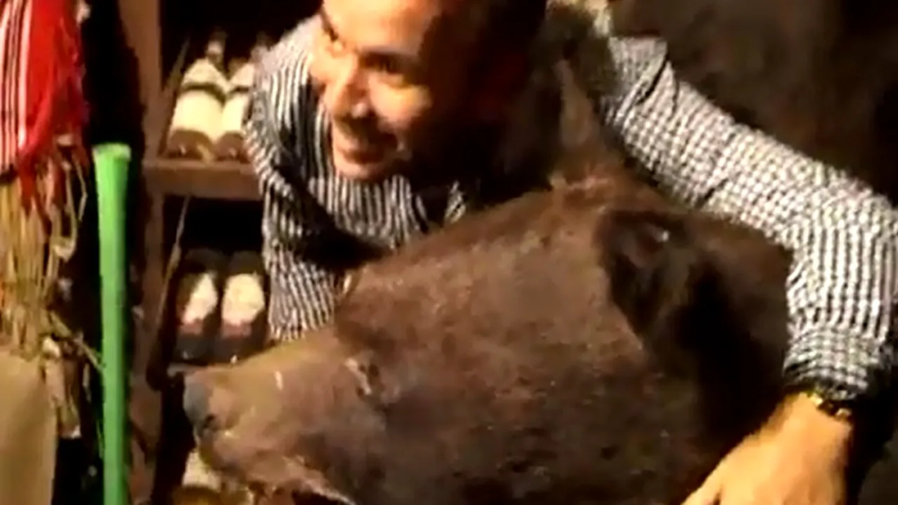„Tradu-i că e de vânat aici”, îl îndeamnă primarul Savin pe translatorul de ocazie, o tânără care știe spaniola. „E cerb, căprior”, arată primarul din Bușteni către hălcile de carne ce atârnă deasupra mesei îmbelșugate.