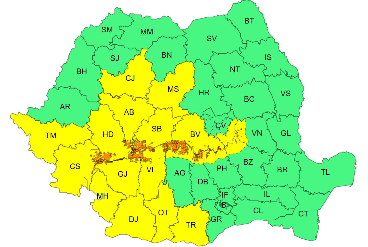 Se vor acumula cantități de apă de peste 10-20 l/m², izolat. Vor mai fi condiții de polei și ghețuș.