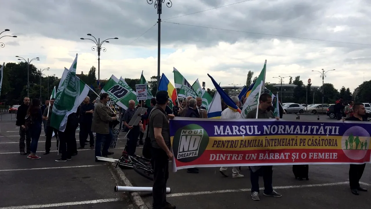 În jur de o sută de persoane s-au strâns, sâmbătă, în Piața Victoriei din Capitală, pentru a participa la Marșul normalității, o acțiune de protest față de parada comunității LGBT, care va avea loc în aceeași zi, începând cu ora 16.00. Protestatarii merg în marș până la Patriarhia Română.