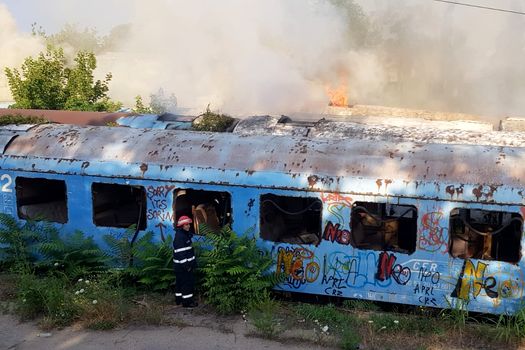 Un incendiu a izbucnit, duminică dimineață,  în Capitală, la depoul CFR, unde sunt trase garniturile scoase din uz.