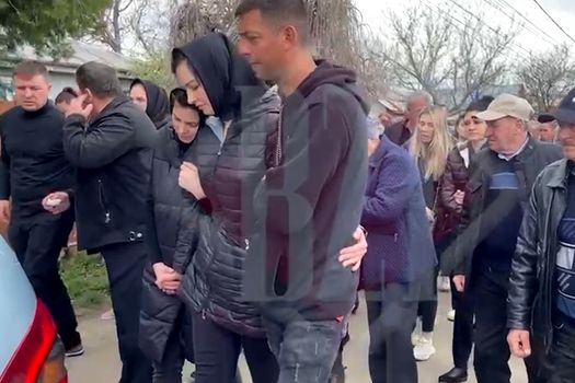 Pe toată durata înmormântării, femeia abia a putut ridica privirea din pământ și a fost nevoie ca doi apropiați să o poarte pe brațe ca să poată ajunge până la biserică și mai apoi la cimitir.