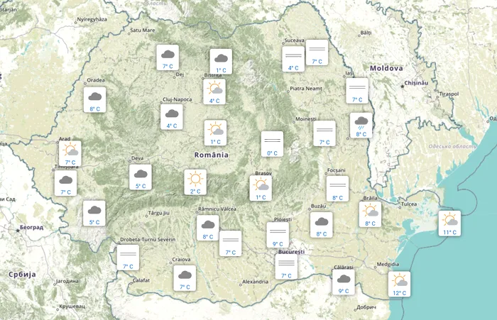 Temperaturi înregistrate în România la ora 07:00, potrivit ANM