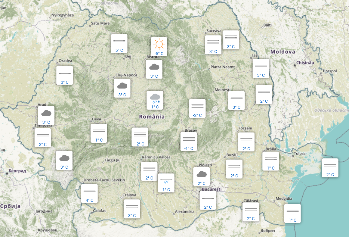 În Moldova a fost ceață, iar la Suceava, Botoșani și Iași au fost 3 grade. Tot 3 grade Celsius s-au înregistrat și la Craiova, Oradea, Arad și Timișoara.