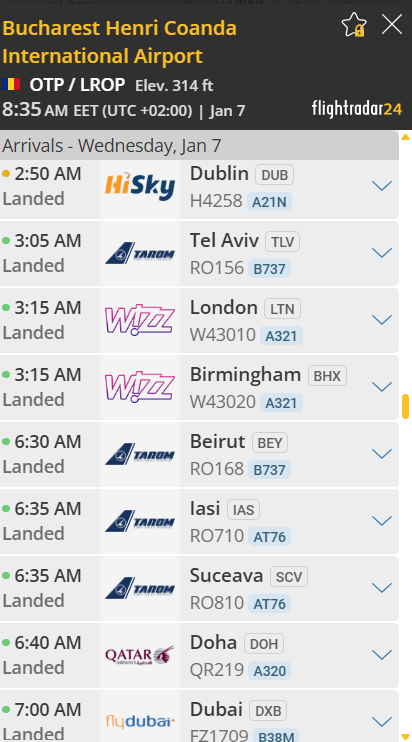 Deși este ceață în București, avioanele de linie continuă să aterizeze fără probleme, potrivit Flightradar 24.