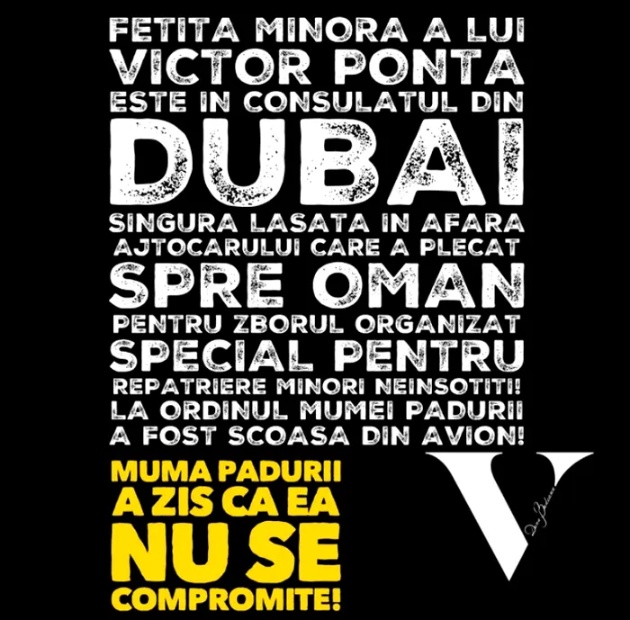 „O fetiță minoră, aflată la un curs, singură în Abu Dhabi, a fost exclusă la ordin de către Muma Pădurii din avionul care aduce minorii români acasă prin Oman, pentru că este fiica lui Victor Ponta”, a postat Dana Budeanu pe Facebook.