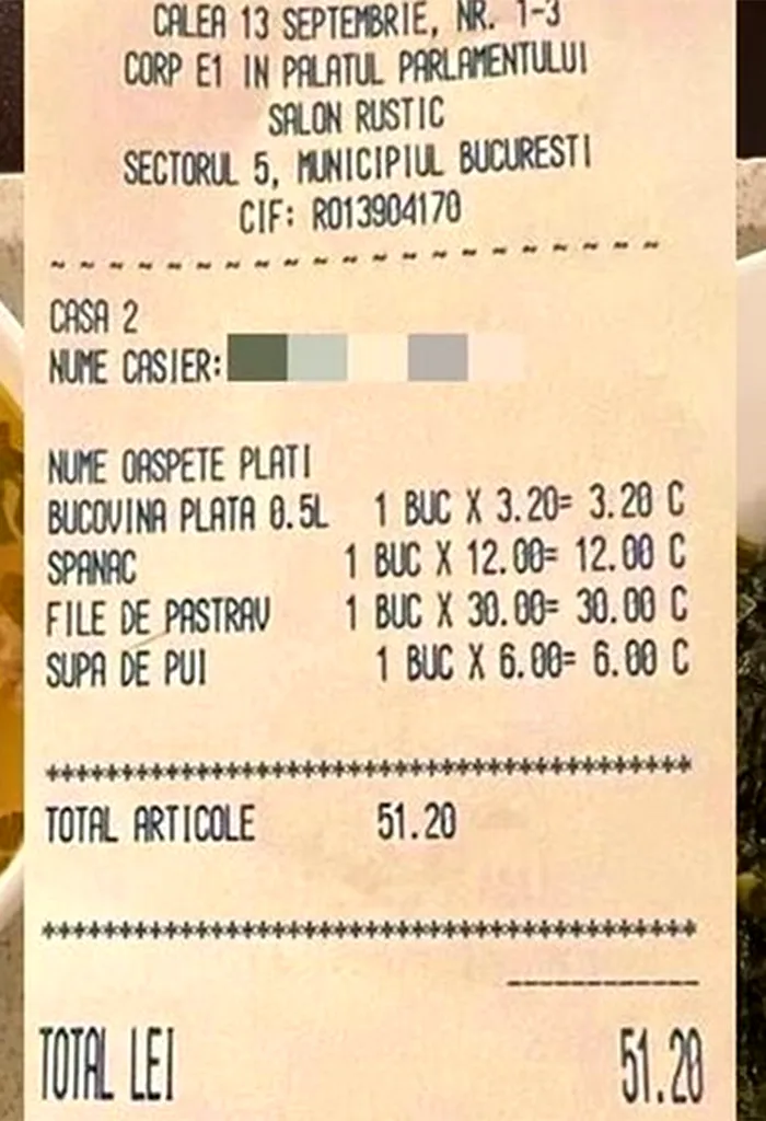 Iată ce surpriză a avut un parlamentar când a primit bonul consumației.