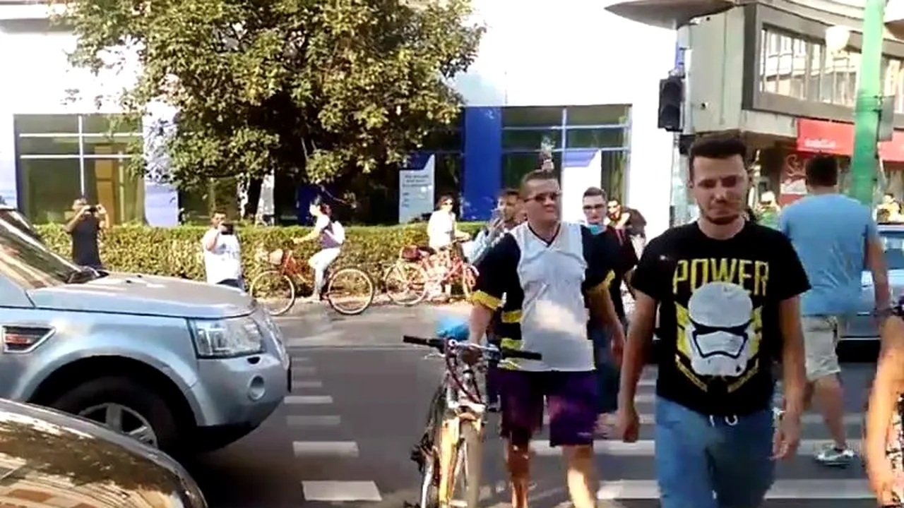 În total, peste 30 de persoane s-au adunat în sensul giratoriu din Piața Mărăști și au început să se plimbe înainte și înapoi pe trecerea de pietoni dinspre str. Alexandru Ioan Cuza, care este nesemaforizată, scandând „Justiție, nu corupție”, „Nu vrem să fim conduși de hoți” sau „Veniți cu noi, luptăm și pentru voi”.