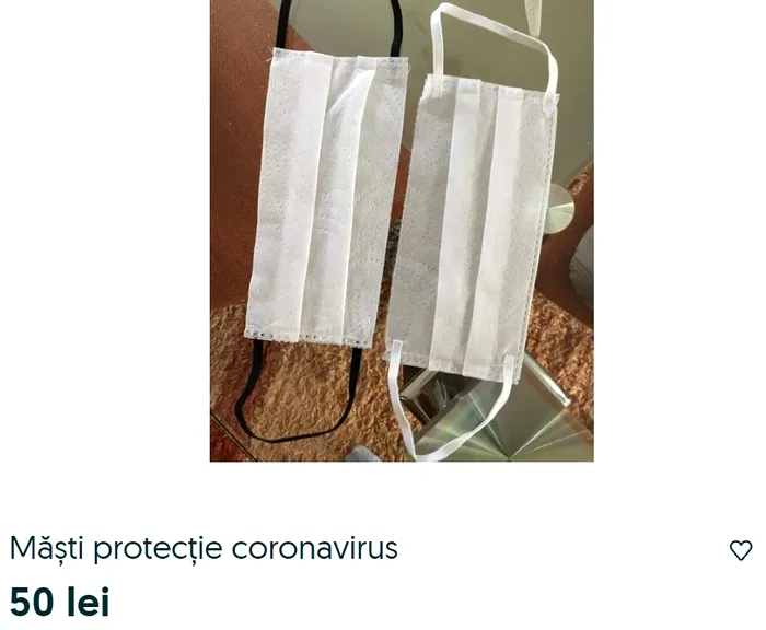 Alți români au pus la vânzare stickere cu măsuri de prevenție coronavirus, trei autocolante la prețul de 60 de lei. Nelipsite sunt și măștile de protecție improvizate din materiale textile la 60 de lei bucata. Un generator Ozon „contra viruși, coronaviruși și bacterii”, se vinde la prețul de 2.050 de lei.