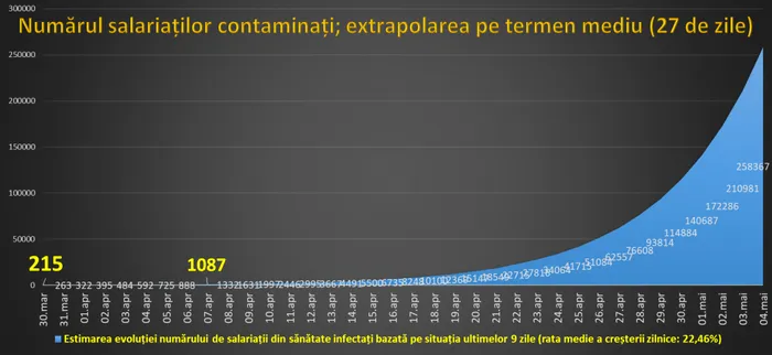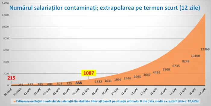 Dacă s-ar menține acest ritm de creștere zilnică a numărului atunci în 27 de zile ar fi infectați toți salariații din sănătate