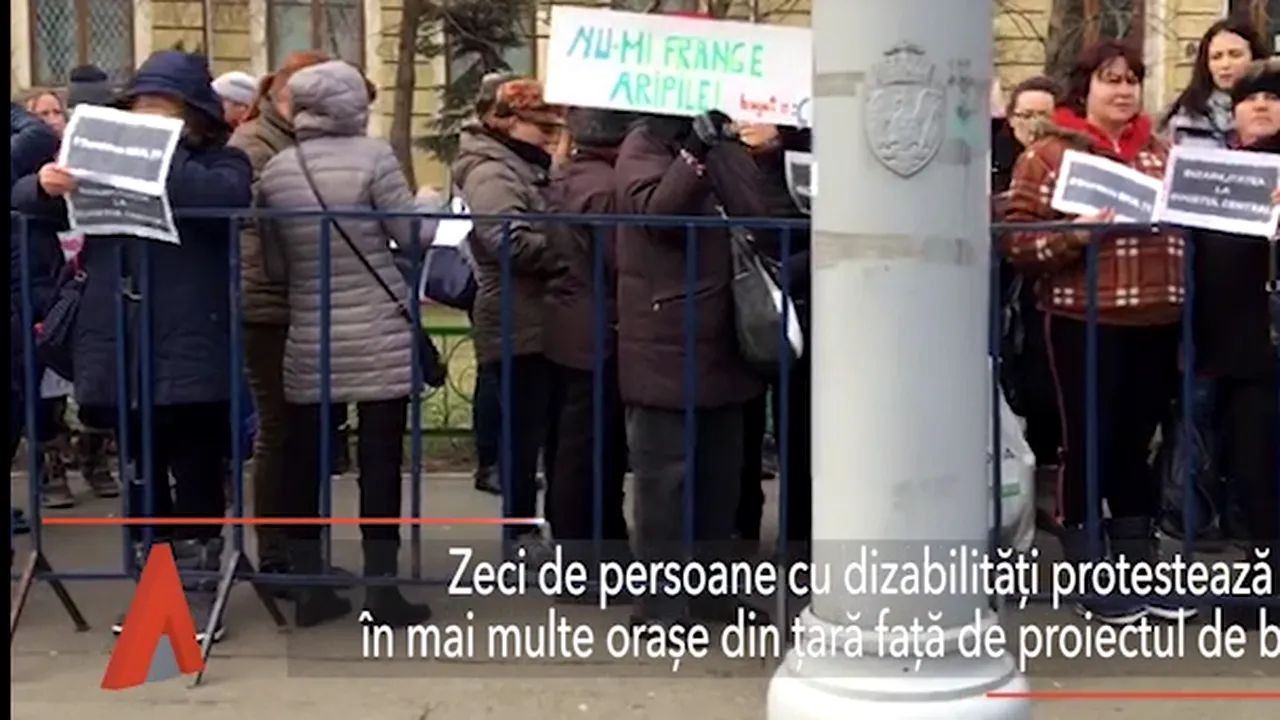 Zeci de oameni, între care și persoane cu dizabilități, protestează, vineri, în Timișoara, Alba Iulia și Cluj-Napoca față de proiectul de buget care prevede ca autoritățile locale să susțină integral finanțarea asistenței sociale. Manifestanții cer și înființarea Fondului pentru Dizabilitate.