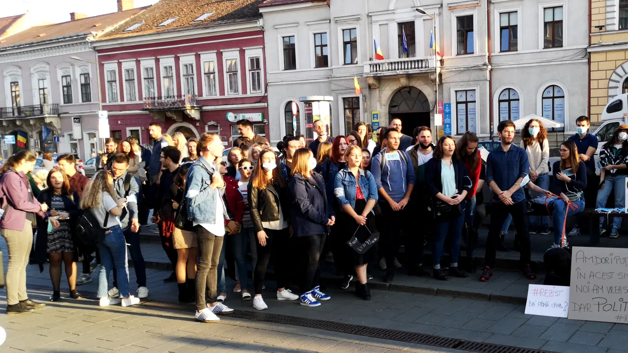 La Iași, circa 50 de mediciniști au ieșit în Piața Unirii. Aceștia au fost îmbrăcați în halate albe și au purtat măști chirurgicale pe care scria #rezi.