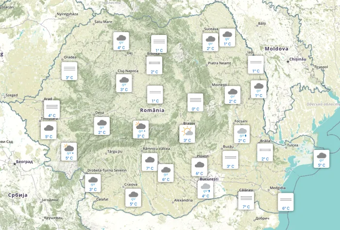 În același timp, temperaturile de astăzi, deși au tendința de scădere față de ziua de ieri, vor rămâne în continuare peste mediile specifice perioadei, cu maxime ce se vor încadra între 1 și 12 grade. Ceața încă mai persistă în partea centrală a țării, în principal și vizibilitatea este scăzută.