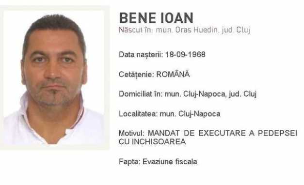 Ioan Bene era urmărit internațional în baza Mandatului European de Arestare emis de Tribunalul București, pentru fals sub înscrisuri sub semnatură privată, dare de mită, evaziune fiscală. Acesta are de executat 6 ani și 2 luni închisoare.
