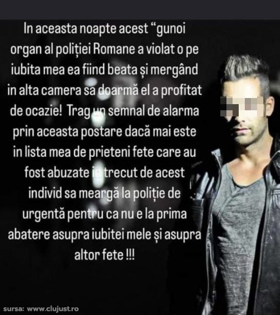 „La data de 12 noiembrie a.c., a fost înregistrat un dosar penal privind săvârșirea infracțiunii de viol, faptă prevăzută si pedepsită de Codul penal. Fapta s-ar fi produs la data de 12 noiembrie a.c., plângerea înregistrată vizând o persoana care are calitate de polițist. În baza probatoriului administrat până în prezent, pe numele acestuia a fost dispusă măsura reținerii pentru 24 de ore, ulterior fiind emis un mandat de arestare preventivă pentru 30 de zile. Cercetările sunt în derulare pentru stabilirea exactă a tuturor împrejurărilor în care s-ar fi produs fapta”, a transmis, marți, Poliția Județeană Cluj.